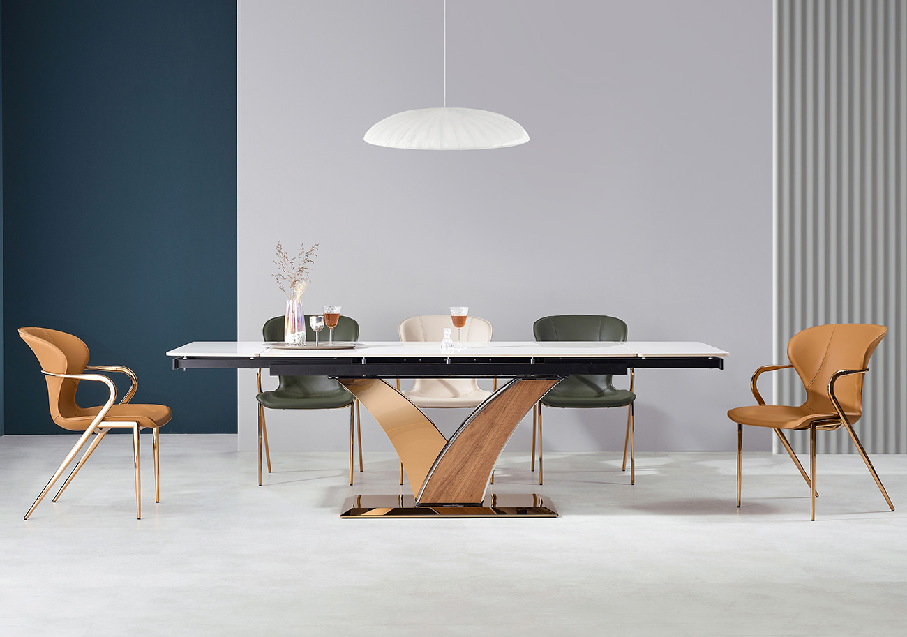 6-8인 확장형 식탁 1ea + 기본형 식탁의자 6ea (아이보리2+브라운2+그린2/골드)