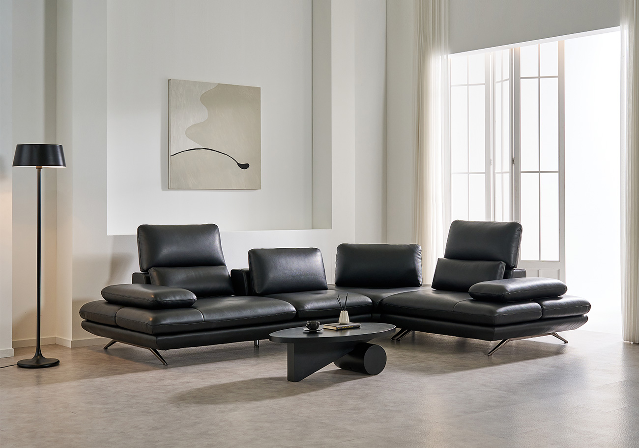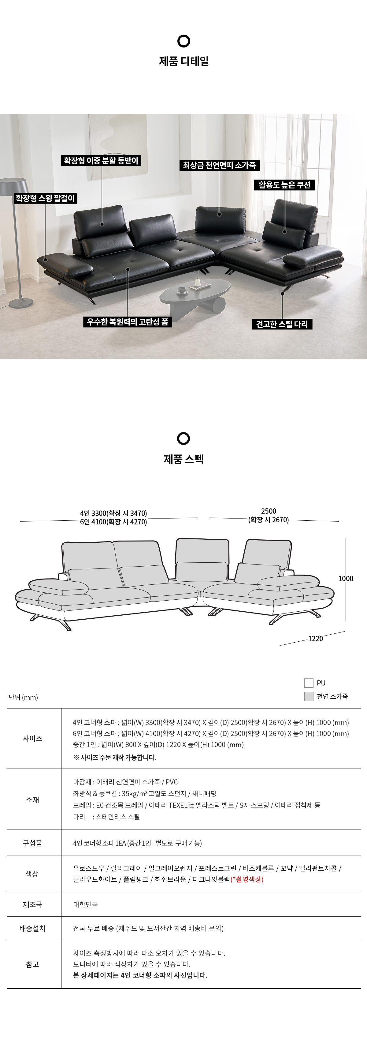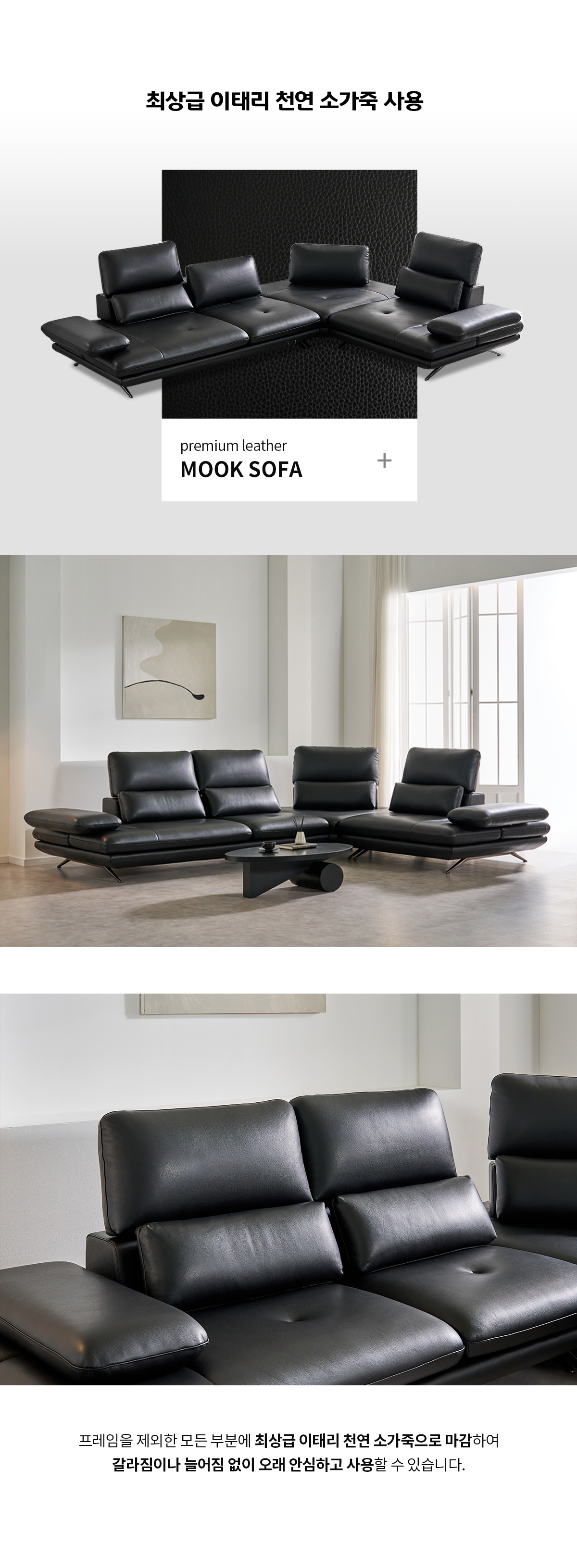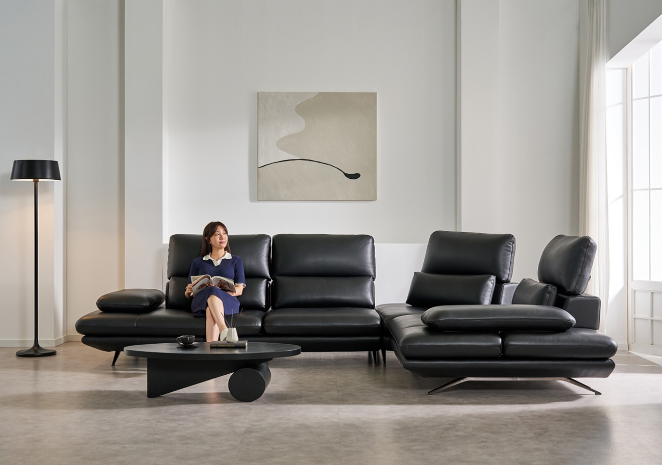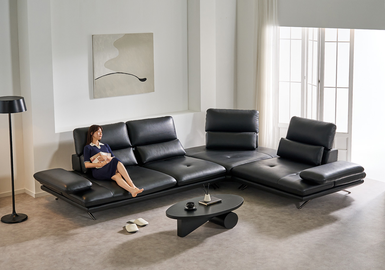 무크 이태리 천연 소가죽 4인/6인용 코너형 리프트 스윙 소파