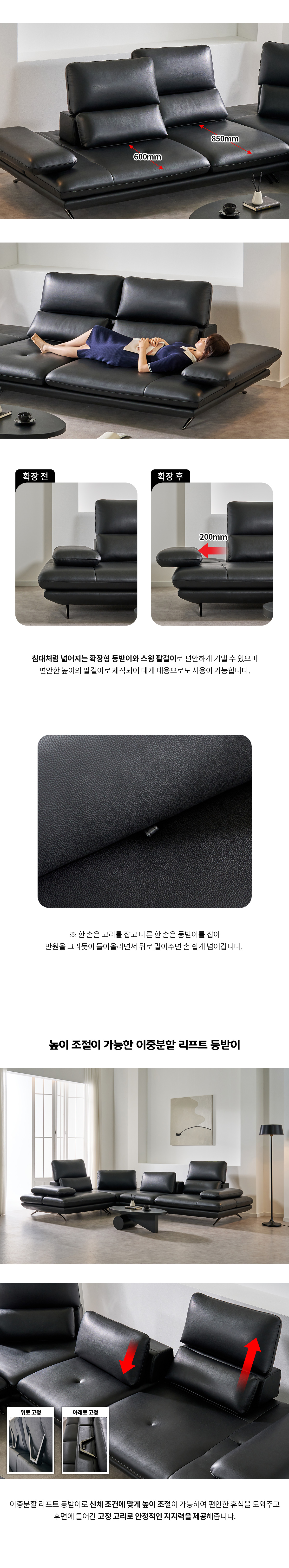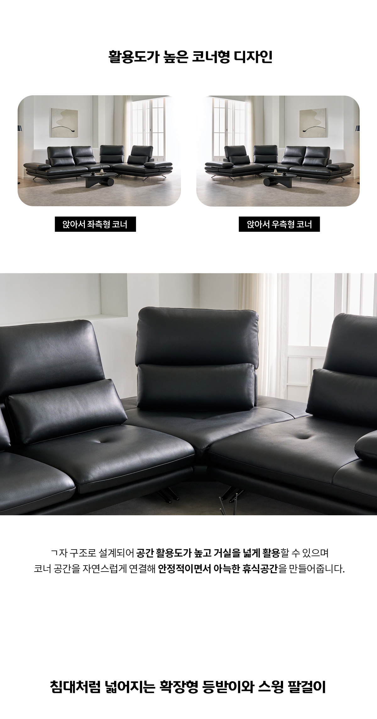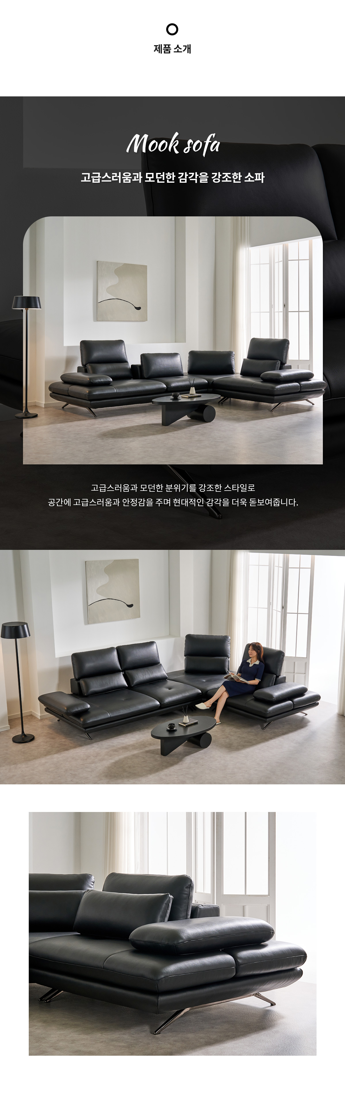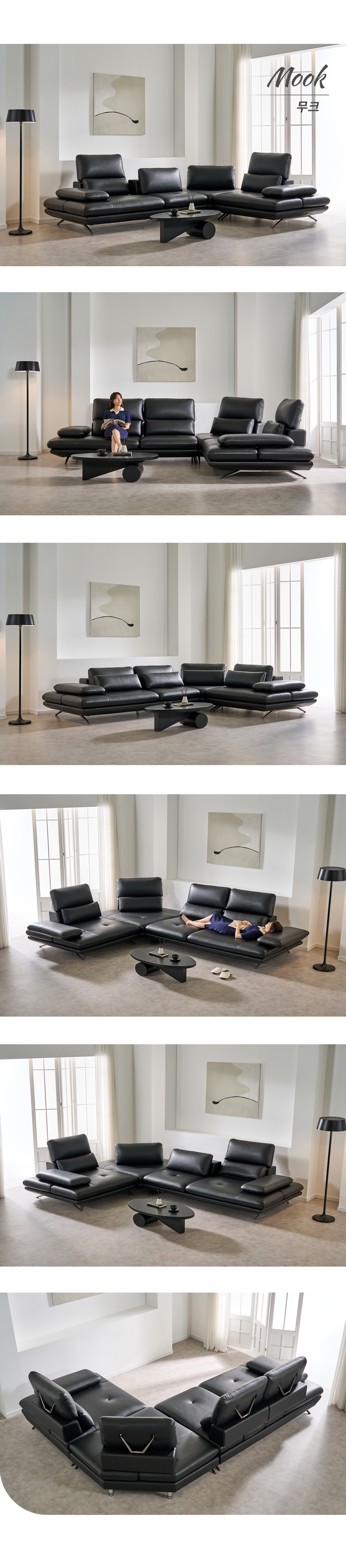무크 이태리 천연 소가죽 4인/6인용 코너형 리프트 스윙 소파
